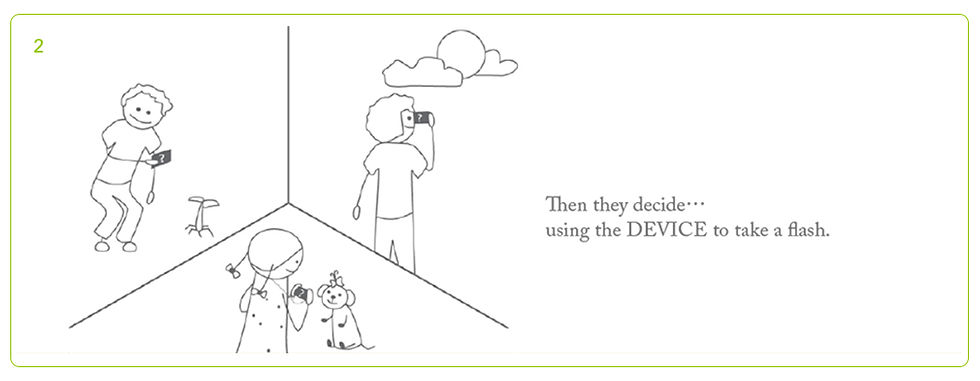 Das Eingabegerät hat den Namen "why", ein Wort, das oft von Kindern benutzt wird. Die Idee ist, die Neugier von Kindern auszunutzen und auf diese Weise ihre täglich erlebten Abenteuer mit ihren Eltern zu teilen. Mithilfe der ausziehbaren Kamera ist es einem Kind möglich, normalerweise mit den eigenen Augen schwer einsehbare Orte über den Bildschirm zu erforschen. Die so aufgenommenen Informationen werden durch Schütteln des Gerätes selbstständig an das Gerät der Eltern übermittelt.